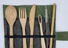 Set bambusových 4 brček s čistícím kartáčkem a cestovním pytlíčkem